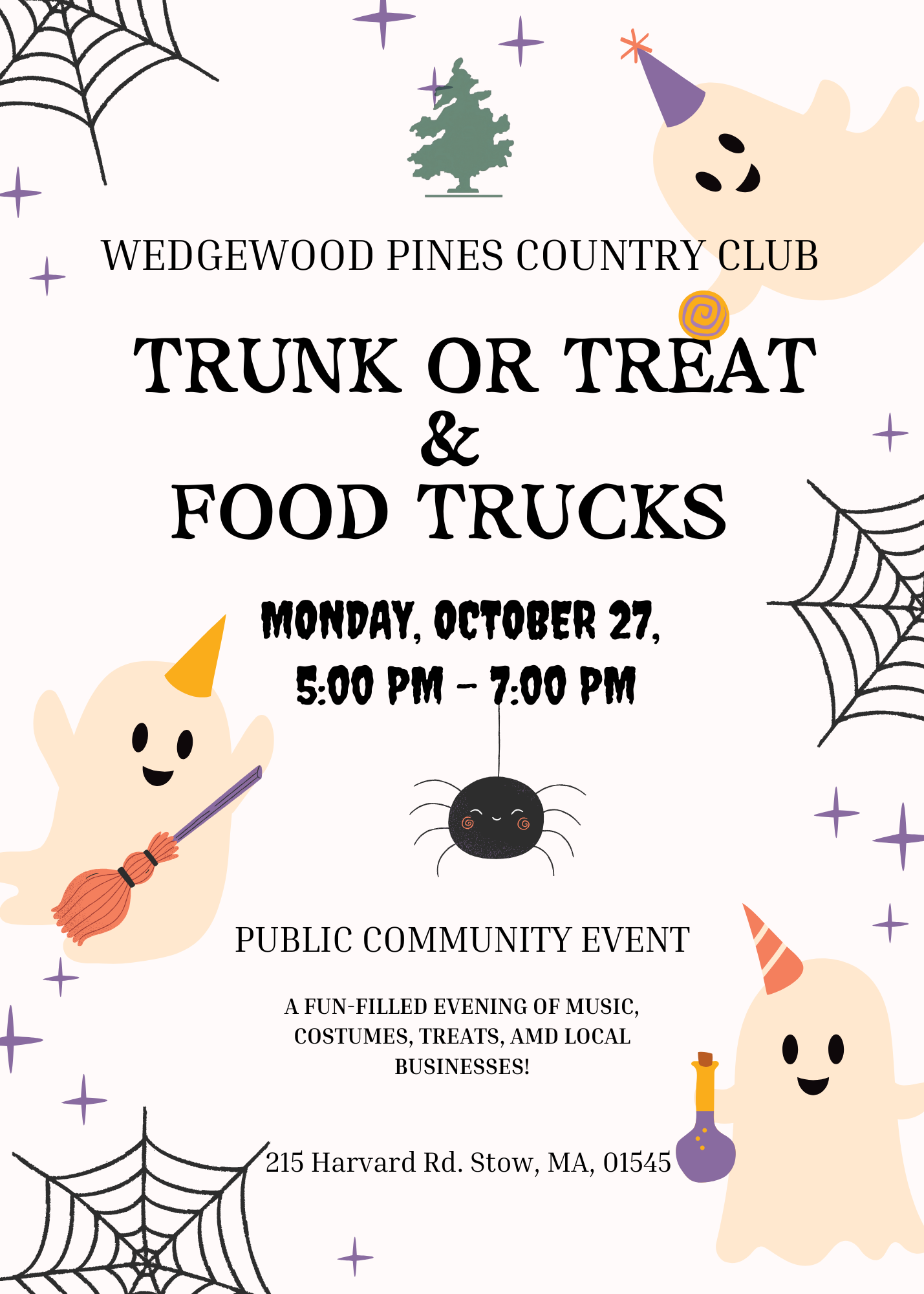 Mark your calendars for a fun-filled community night at Wedgewood Pines! Bring the whole family out for our Trunk or Treat & Food Truck Fall Bash—a free event open to all friends and neighbors.tion goes here